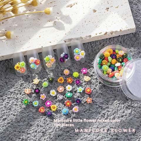 Conjunto de 100 Little Flower DIY Nail Jewelry Resina Colorida Manicure Decorações Acrílico & Plástico Loose Beads Material de Argila