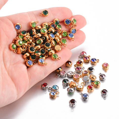 थोक 12-रंग 6 मिमी स्टेनलेस स्टील जन्मदिन के पत्थर के पेलेंट गहने डिय धातु सामग्री के साथ सामान