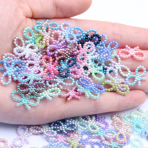 18mm Rainbow Hallow Bow Imitação Rodada Pérola Beads Solto ABS Slime para DIY Clothing & Jewelry Crafting White & Pink Cores